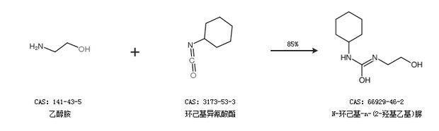 1.通過乙醇胺和環(huán)己基異氰酸酯合成N-環(huán)己基-n-(2-羥基乙基)脲,收率約85%;