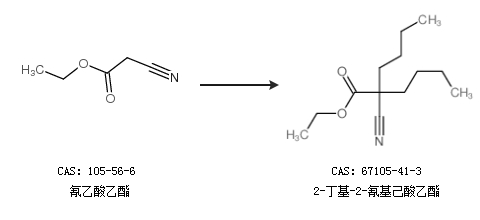 1.通過(guò)正溴丁烷和氰乙酸乙酯合成2-丁基-2-氰基己酸乙酯