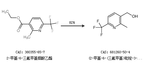 1.通過2-甲基-6-三氟甲基煙酸乙酯合成(2-甲基-6-(三氟甲基)吡啶-3-基)甲醇,收率約82%;