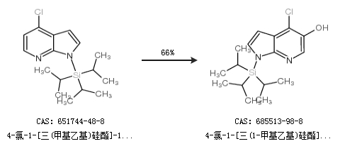 1.通過4-氯-1-[三(甲基乙基)硅酯]-1H-吡咯并[2,3-B]吡啶合成4-氯-1-[三(1-甲基乙基)硅酯]-1H-吡咯并[2,3-B]吡啶-5-醇,收率約66%;