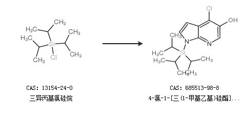 英文別名 4-chloro-1-triisopropylsilanyl-1H-pyrrolo[2,3-b]pyridin-5-ol;4-chloro-5-hydroxy-1-triisopropylsilanyl-7-azaindole;1H-PYRROLO[2,3-B]PYRIDIN-5-OL,4-CHLORO-1-[TRIS(1-METHYLETHYL)SILYL];4-Chloro-1-(triisopropylsilyl)-1H-pyrrolo[2,3-b]pyridin-5-ol;