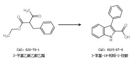 2.通過2-芐基乙酰乙酸乙酯合成3-苯基-1H-吲哚-2-羧酸
