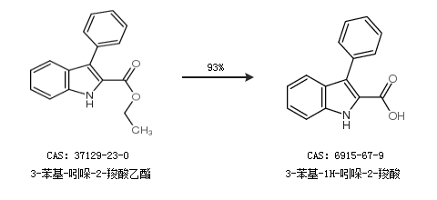 1.通過3-苯基-吲哚-2-羧酸乙酯合成3-苯基-1H-吲哚-2-羧酸,收率約93%;