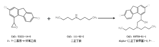 2.通過2,7-二氯芴-4-環(huán)氧乙烷和二正丁胺合成Alpha-(二正丁胺甲基)-2,7-二氯芴-4-甲醇
