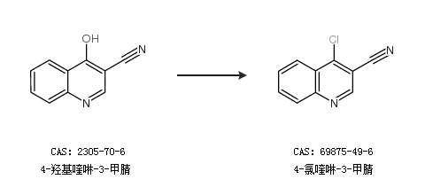 1.通過(guò)4-羥基喹啉-3-甲腈合成4-氯喹啉-3-甲腈