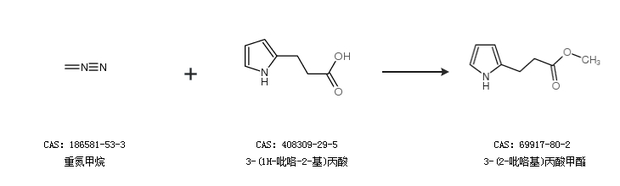2.通過重氮甲烷和3-(1H-吡咯-2-基)丙酸合成3-(2-吡咯基)丙酸甲酯