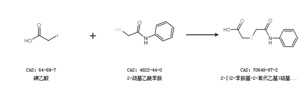 1.通過碘乙酸和2-疏基乙酰苯胺合成2-[(2-苯胺基-2-氧代乙基)硫基]乙酸