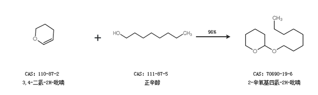 1.通過(guò)3,4-二氫-2H-吡喃和正辛醇合成2-辛氧基四氫-2H-吡喃,收率約96%;