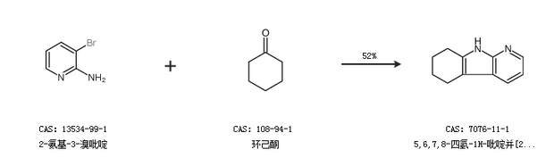 2.通過2-氨基-3-溴吡啶和環(huán)己酮合成5,6,7,8-四氫-1H-吡啶并[2,3-b]吲哚,收率約52%;