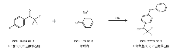 1.通過(guò)4''-溴-2,2,2-三氟苯乙酮和苯酚鈉合成4-苯氧基-2,2,2-三氟苯乙酮,收率約77%;