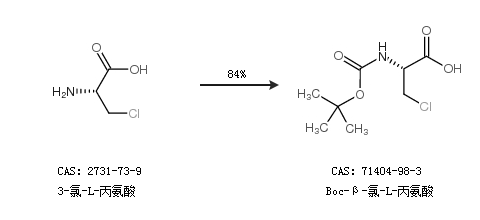 1.通過3-氯-L-丙氨酸合成Boc-β-氯-L-丙氨酸,收率約84%;