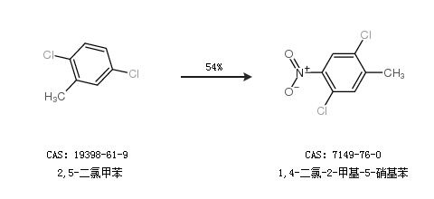1.通過2,5-二氯甲苯合成1,4-二氯-2-甲基-5-硝基苯,收率約54%;