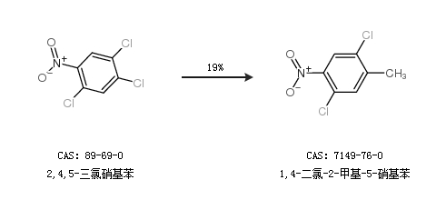 2.通過2,4,5-三氯硝基苯合成1,4-二氯-2-甲基-5-硝基苯,收率約19%;