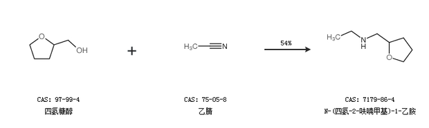 2.通過四氫糠醇和乙腈合成N-(四氫-2-呋喃甲基)-1-乙胺,收率約54%;