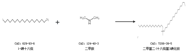1.通過1-碘十八烷和二甲胺合成二甲基二(十八烷基)碘化銨
