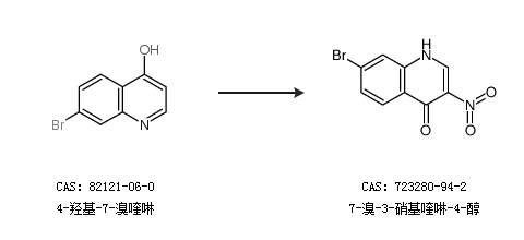 1.通過4-羥基-7-溴喹啉合成7-溴-3-硝基喹啉-4-醇