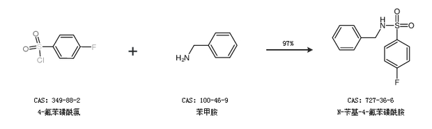1.通過4-氟苯磺酰氯和苯甲胺合成N-芐基-4-氟苯磺酰胺,收率約97%;