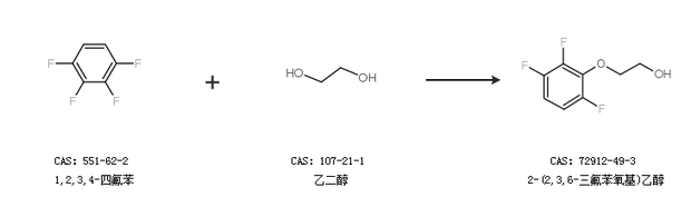1.通過1,2,3,4-四氟苯和乙二醇合成2-(2,3,6-三氟苯氧基)乙醇,收率約41%;