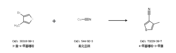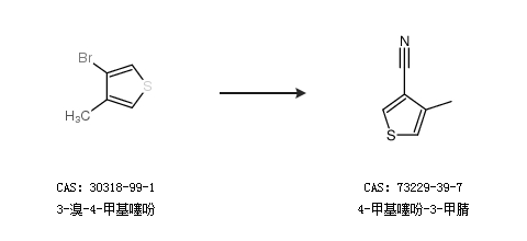 1.通過3-溴-4-甲基噻吩合成4-甲基噻吩-3-甲腈