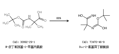 1.通過N-叔丁氧羰基-2-甲基丙氨酸合成Boc-2-氨基異丁酸酰胺,收率約88%;