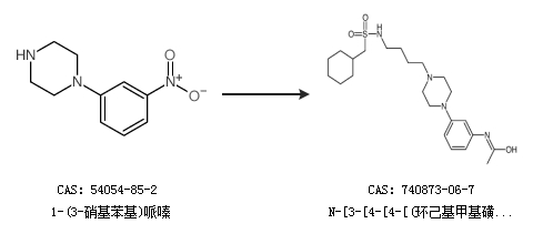 2.通過1-(3-硝基苯基)哌嗪合成N-[3-[4-[4-[(環(huán)己基甲基磺?;?氨基]丁基]哌嗪-1-基]苯基]乙酰胺