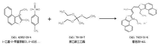 1.通過1-乙基-2-甲基萘酚[1,2-d]對(duì)甲苯磺酸噻唑鎓鹽和原乙酸三乙酯合成著色劑-ALL