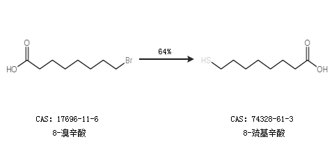 1.通過8-溴辛酸合成8-巰基辛酸,收率約64%;