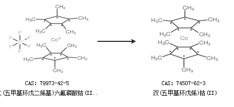 1.通過二(五甲基環(huán)戊二烯基)六氟磷酸鈷(III)合成雙(五甲基環(huán)戊烯)鈷(II),收率約84%;