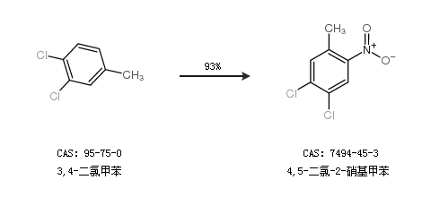 1.通過3,4-二氯甲苯合成4,5-二氯-2-硝基甲苯,收率約93%;