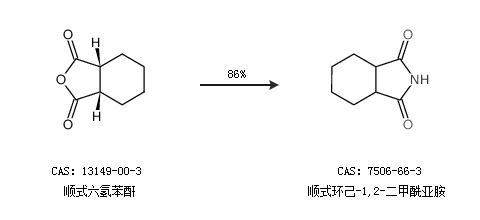 2.通過順式六氫苯酐合成順式環(huán)己-1,2-二甲酰亞胺,收率約86%;