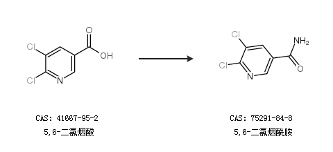 1.通過5,6-二氯煙酸合成5,6-二氯煙酰胺