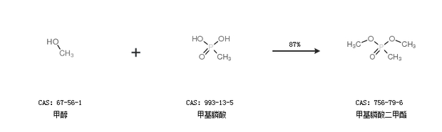 1.通過甲醇和甲基膦酸合成甲基膦酸二甲酯,收率約87%;