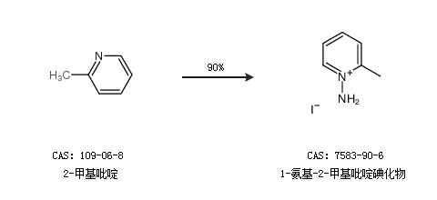 1.通過2-甲基吡啶合成1-氨基-2-甲基吡啶碘化物,收率約90%;