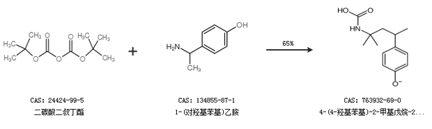 1.通過二碳酸二叔丁酯和1-(對(duì)羥基苯基)乙胺合成4-(4-羥基苯基)-2-甲基戊烷-2-氨基甲酸,收率約65%;