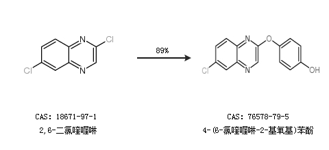 1.通過2,6-二氯喹喔啉合成4-(6-氯喹喔啉-2-基氧基)苯酚,收率約89%;