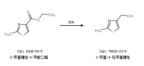 1.通過2-甲基噻唑-4-甲酸乙酯合成2-甲基-4-羥甲基噻唑,收率約92%;