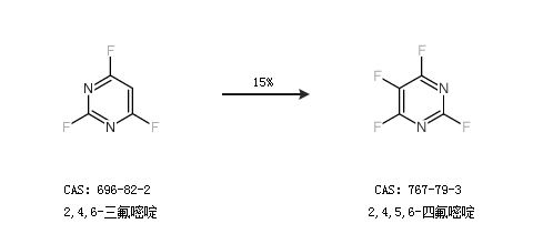 2.通過2,4,6-三氟嘧啶合成2,4,5,6-四氟嘧啶,收率約15%;