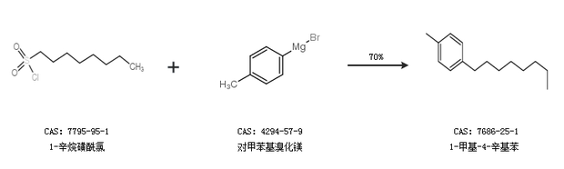 2.通過1-辛烷磺酰氯和對甲苯基溴化鎂合成1-甲基-4-辛基苯,收率約70%;