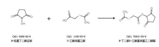 中文別名 N-丁二酸,S-乙酰基巰基乙二醇酯;N-丁二酸.S-乙?;鶐€基乙二醇酯;N-丁二酸,S-乙?;鶐€基乙二醇酯;S-乙酰硫基乙酸琥珀酰亞胺酯;S-乙酰基硫代乙醇酸N-琥珀酰亞胺酯[交聯(lián)劑];N-琥珀酰亞胺基-S-乙酰硫基乙酸酯;