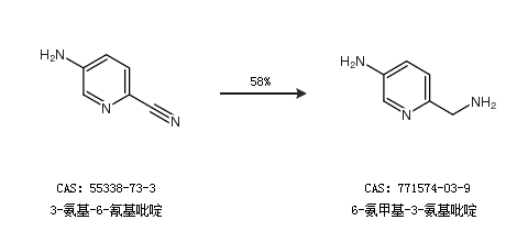 2.通過(guò)3-氨基-6-氰基吡啶合成6-氨甲基-3-氨基吡啶,收率約58%;