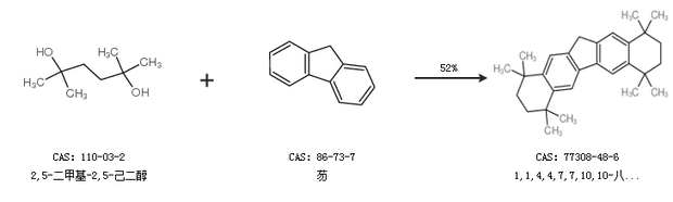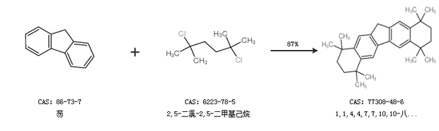 1.通過(guò)2,5-二甲基-2,5-己二醇和芴合成1,1,4,4,7,7,10,10-八甲基-2,3,4,7,8,9,10,12-八氫-1H-二苯并[b,h]芴,收率約52%;