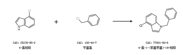 2.通過4-氯吲哚和芐基氯合成4-氯-1-(苯基甲基)-1H-吲哚