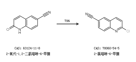 1.通過(guò)2-氧代-1,2-二氫喹啉-6-甲腈合成2-氯喹啉-6-甲腈,收率約79%;