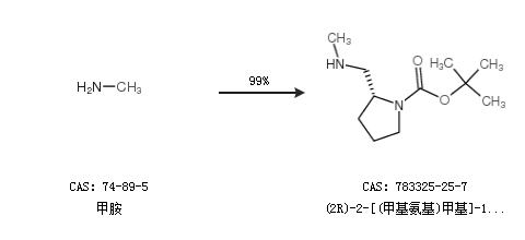 1.通過甲胺合成(2R)-2-[(甲基氨基)甲基]-1-吡咯烷羧酸叔丁酯,收率約99%;
