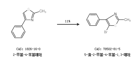 2.通過2-甲基-4-苯基噻唑合成5-溴-2-甲基-4-苯基-1,3-噻唑,收率約11%;