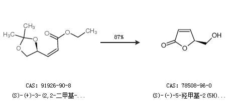 1.通過(S)-(+)-3-(2,2-二甲基-1,3-二氧戊環(huán)-4-基)-順式-2-丙烯酸乙酯合成(S)-(-)-5-羥甲基-2(5H)-呋喃酮,收率約87%;