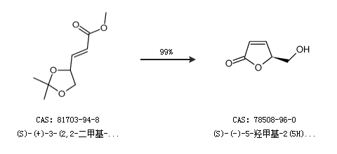 2.通過(S)-(+)-3-(2,2-二甲基-1,3-二噁戊環(huán)-4-基)-順-2-丙烯酸甲酯合成(S)-(-)-5-羥甲基-2(5H)-呋喃酮,收率約99%;