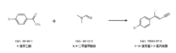 1.通過4-溴苯乙酮和N,N-二甲基甲酰胺合成3-(4-溴苯基)-3-氯丙烯腈