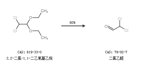 1.通過2,2-二氯-1,1-二乙氧基乙烷合成二氯乙醛,收率約60%;