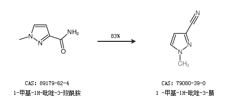 1.通過1-甲基-1H-吡唑-3-羧酰胺合成1 -甲基-1H-吡唑-3-腈,收率約83%;